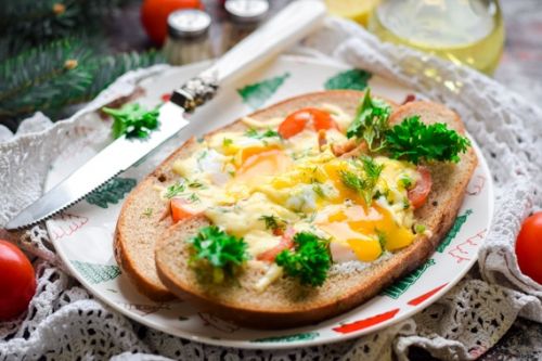 Открытый сэндвич с яйцом и томатами