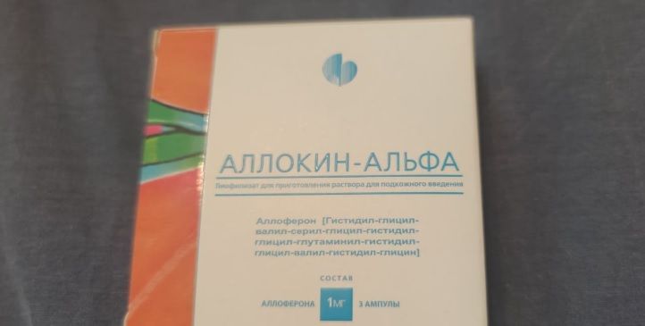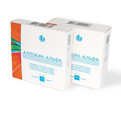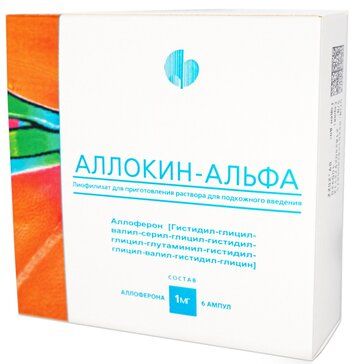 1 ампула Аллокин-альфа препарата содержит: аллоферон 1,0 мг.