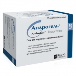 Андрогель содержит в 1 пакете (5 г): естостерона – 50 мг.